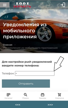 Введите телефон указанный при регистрации в интернет магазине для настройки индивидульных Push уведомлений